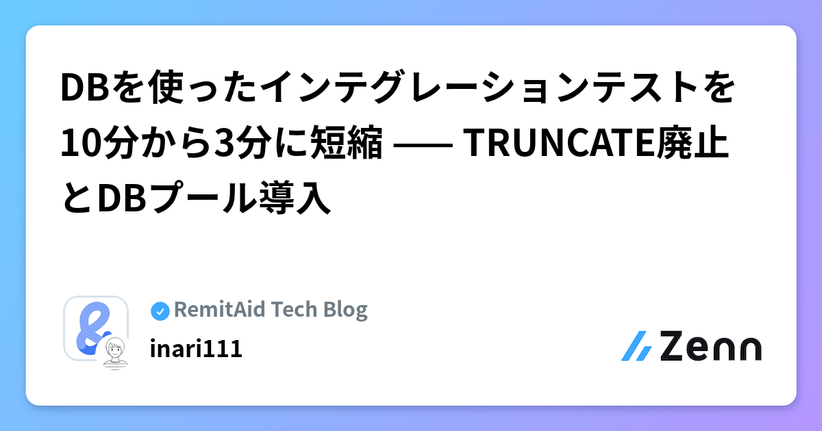 DBを使ったインテグレーションテストを10分から3分に短縮 —— TRUNCATE廃止とDBプール導入