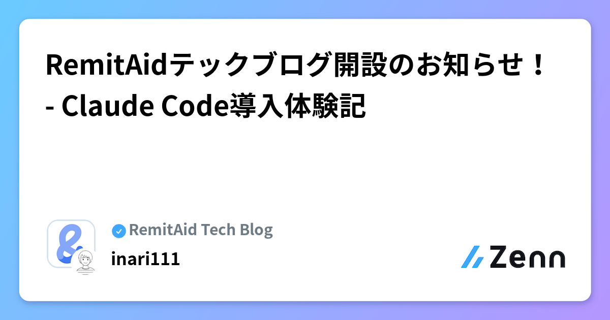 RemitAidテックブログ開設のお知らせ! - Claude Code導入体験記