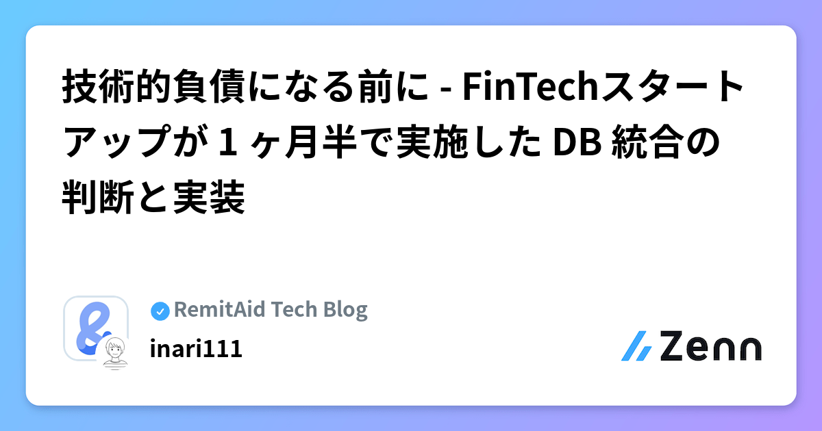 技術的負債になる前に - FinTechスタートアップが 1 ヶ月半で実施した DB 統合の判断と実装